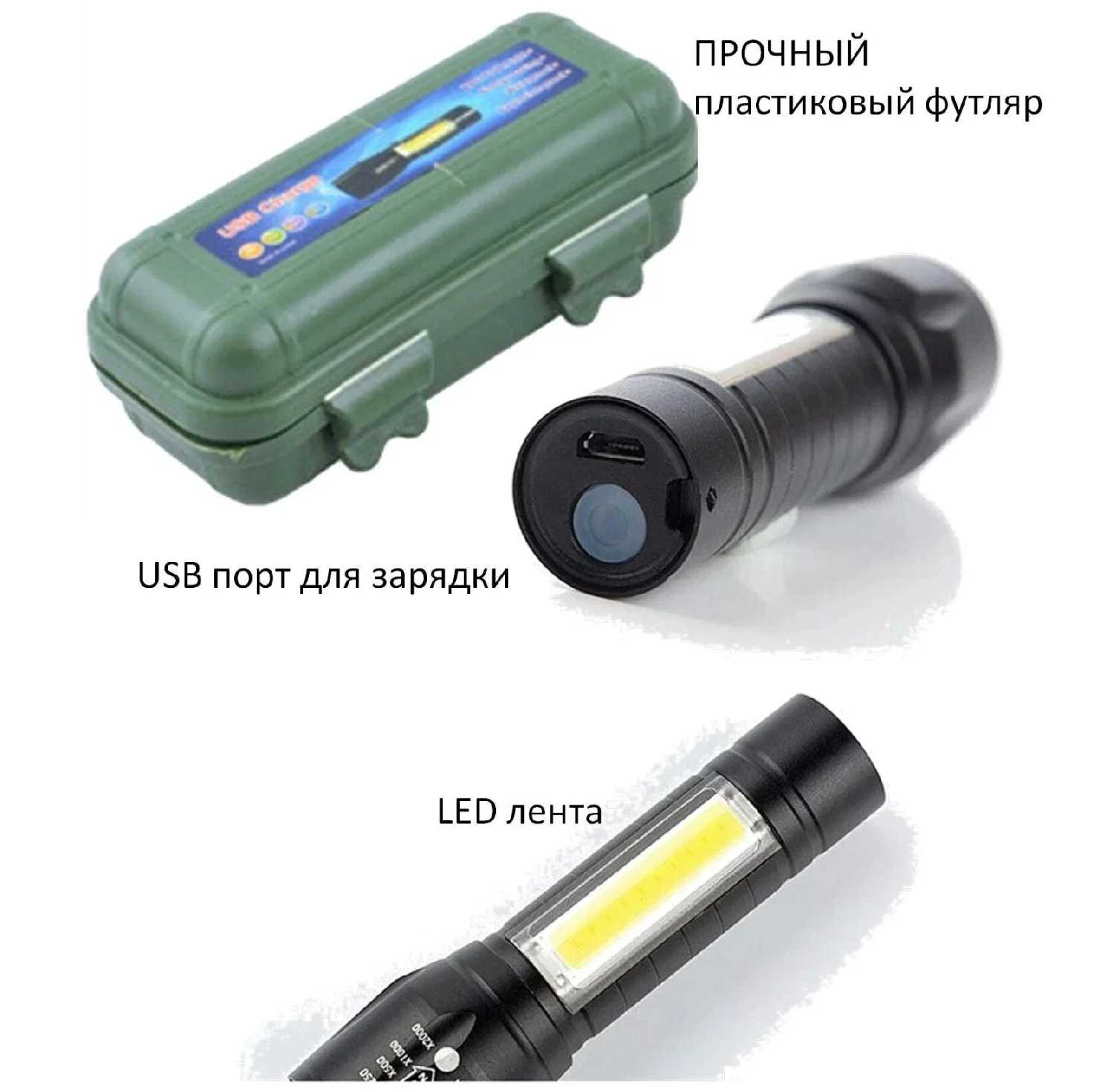 Особенности : | USB-зарядка, влагозащита, дальний свет, для детей, дневной белый свет, кабель USB, клипса для крепления, мигание, сигнальный режим, стробоскоп, теплый белый свет, ударопрочный корпус, фокусировка с зумом, холодный белый свет, чехол в комплекте |