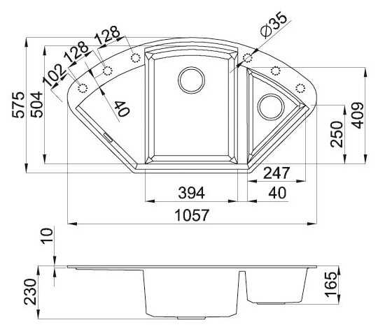 Характеристи elleci Easy Corner metaltek, 57.5х105.7см, искусственный гранит