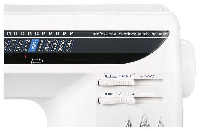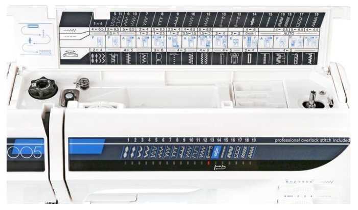 - + Функции вполне достаточно. целых 19 швейных операции выполняет. Петля автомат, есть несколько видов строчек. И в комплекте лапки...