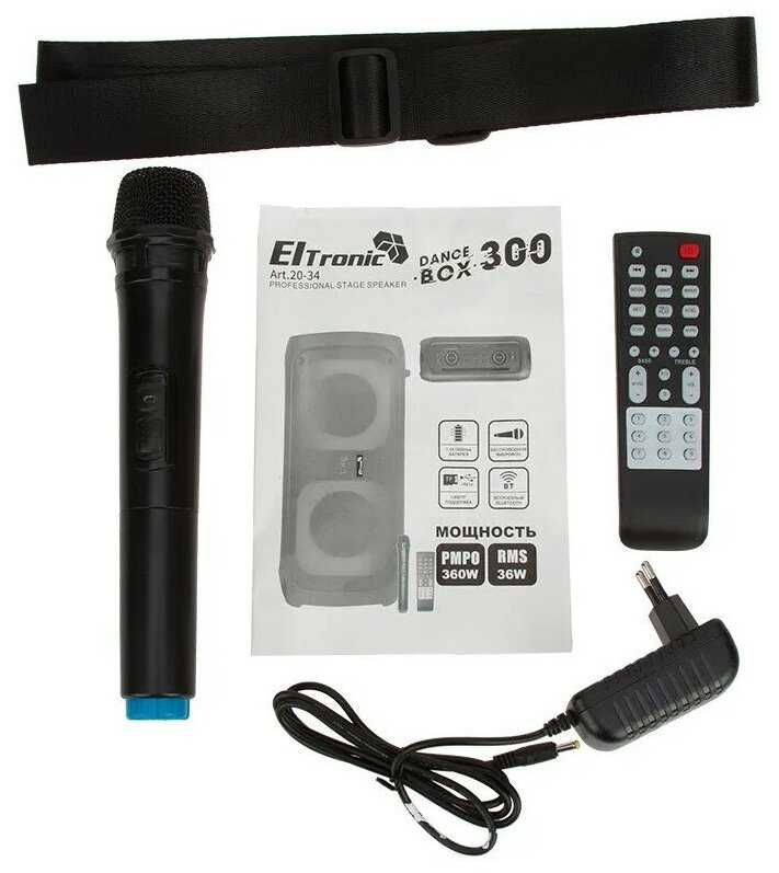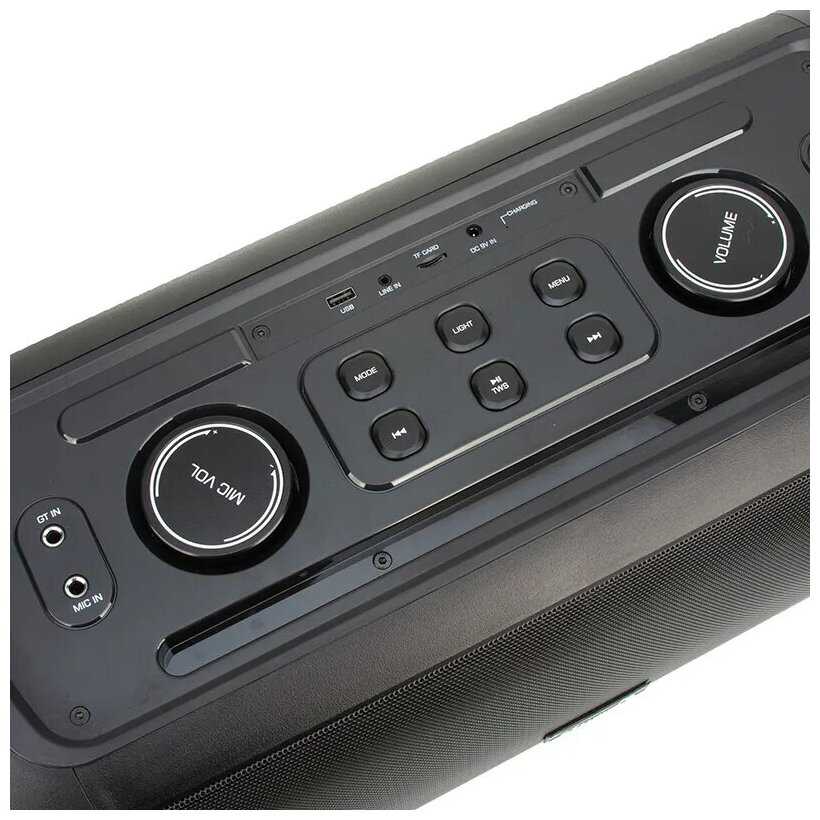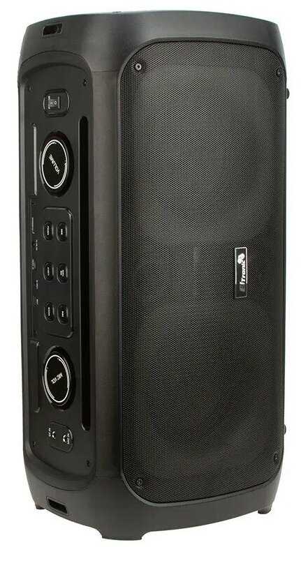 FM-радио, влагозащищенный корпус, встроенный микрофон (функция HandsFree), дисплей, караоке, поддержка microSD, режим Power Bank, ремешок, ручка, световые эффекты