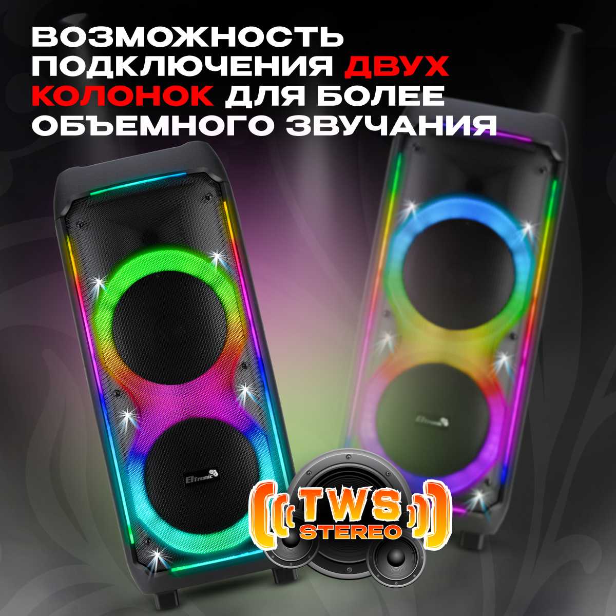 Пользователи выделяют комплектацию (два микрофона, пульт, батарейки), мобильность за счёт колёс и качественный пластик корпуса. Также ценят возможность тонкой настройки звука как для музыки, так и для вокала через отдельные регуляторы.