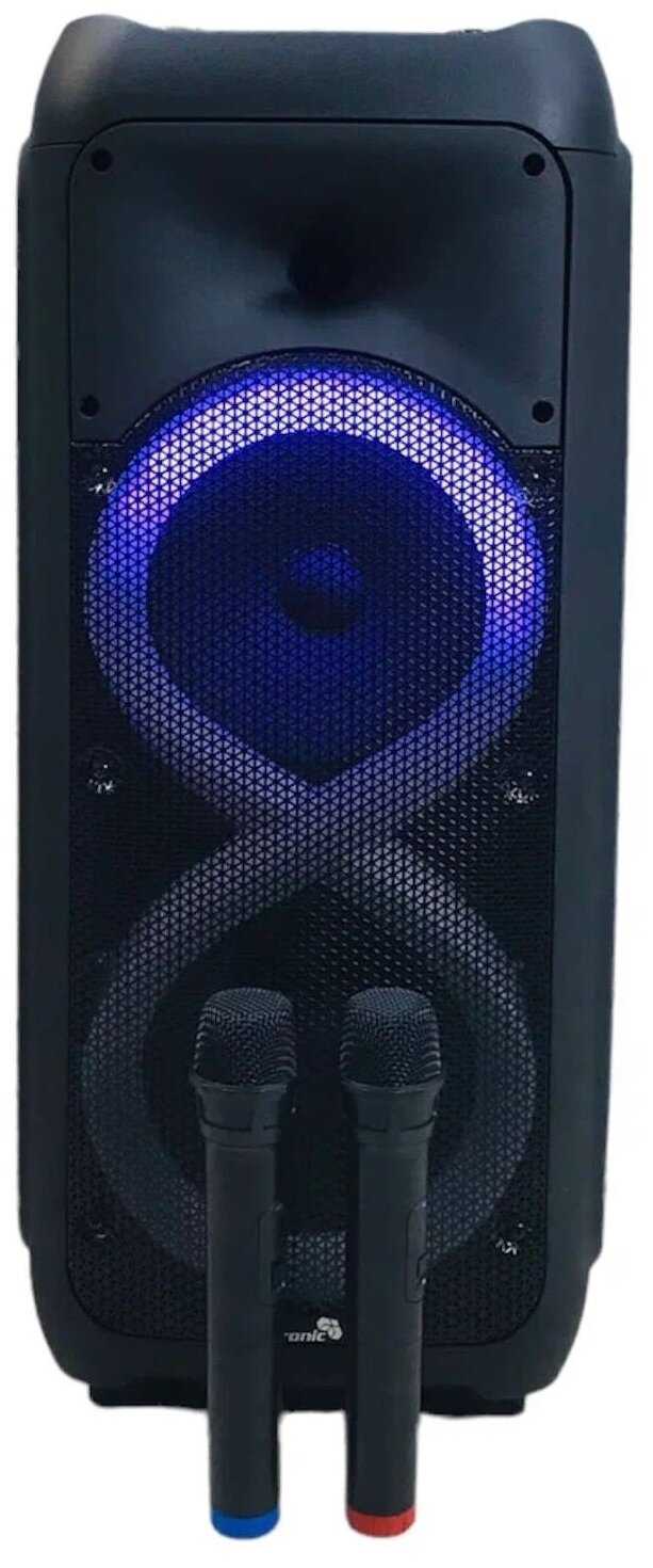 - + отличная колонка! в комплекте 2 беспроводных микрофона! это был главный критерий поиска. немного тяжеловата, но хорошая колонка не может быть лёгкой. легко подключили телефон. громко ещё не проверяли, но звук хороший. рекомендую к покупке!