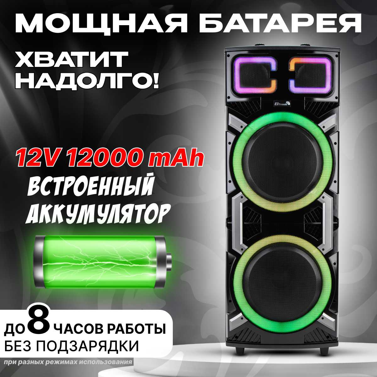 - Два 15-дюймовых динамика обеспечивают экстремальную громкость, достаточную для мероприятий на открытом воздухе (отмечено в 15+ отзывах).