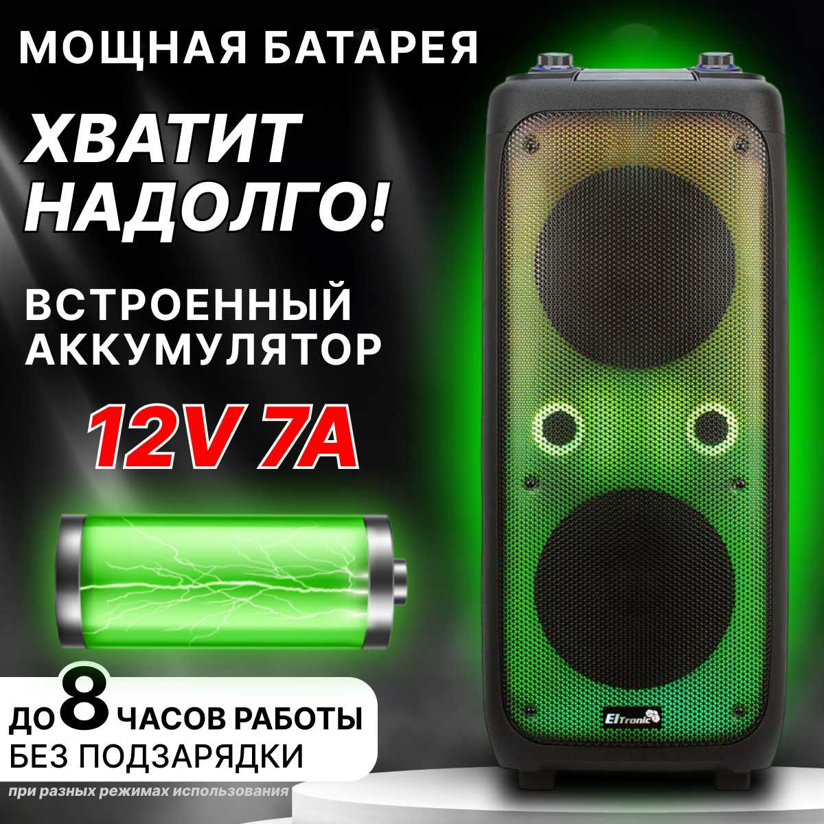 Сравнение с конкурентами по отзывам пользователей: По сравнению с предыдущей моделью Eltronik 20-58 эта 20-62 кратно громче с большим басом и лучшей подсветкой. Пользователи предпочитают ее тихим колонкам других фирм, которые вернули из-за брака или слабости. JBL в два раза дороже превосходит по качеству звука, басу, громкости, эргономике и отсутствию шумов — один вернул эту за JBL. Harman Kardon и Marshall стильнее и чище от 50 тыс. руб., но не для бюджета. Старые колонки шипят и хрипят, без Bluetooth — эта мобильнее с радио и аккумулятором. Модели вроде 20-14 имеют авто-подключение, чего нет здесь. Бюджетные аналоги тише, без микрофонов и подсветки. Для дискотек в классе или на даче эта лучше дешевых, но уступает премиум в чистоте. Стерео-пара из двух таких дает крутой эффект, чего нет у одиночных конкурентов. В целом, выигрывает у бюджетных по мощности и функциям, проигрывает премиум по звуку и сборке.