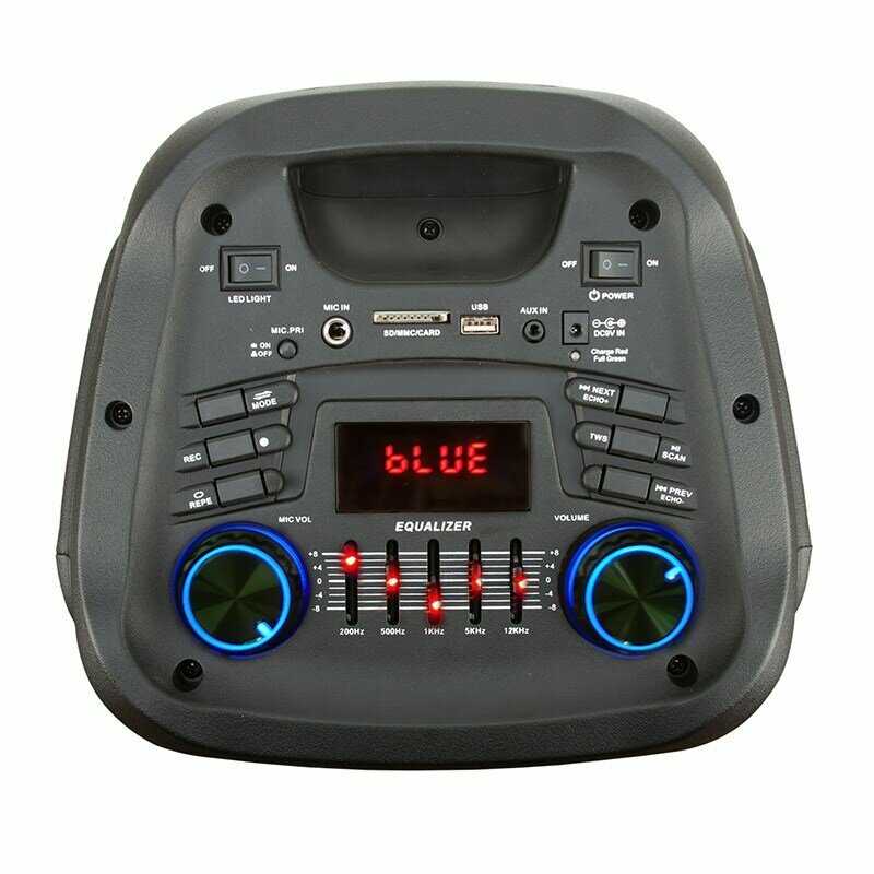 - + Ручной эквалайзер, два беспроводных микрофона, хороший звук, много разъёмов, небольшой вес, цена.