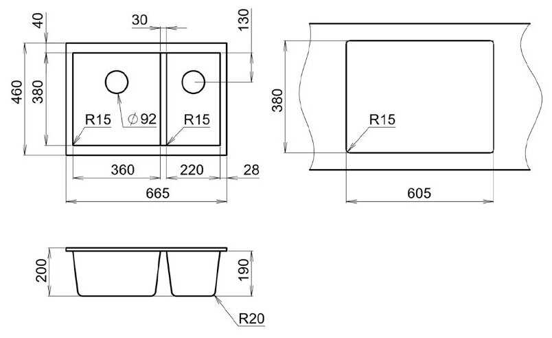 Отзывы о Мойка гранитная EMAR 665х460х200 мм EMQ-2665. PL Антрацит