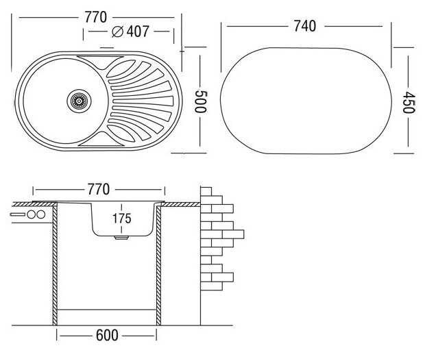 - форма мойки: овальная