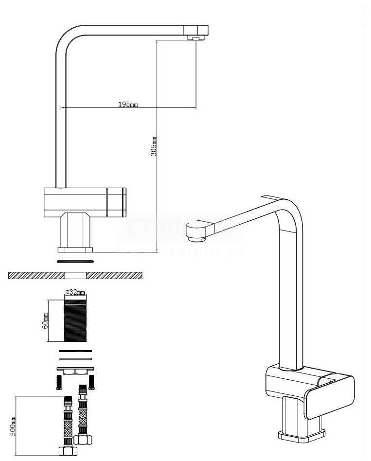 Отзывы о Смеситель для кухни (мойки) EMAR ЕС-3014S, рычажный