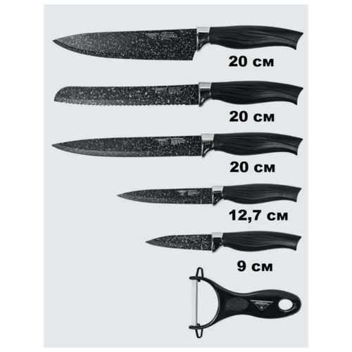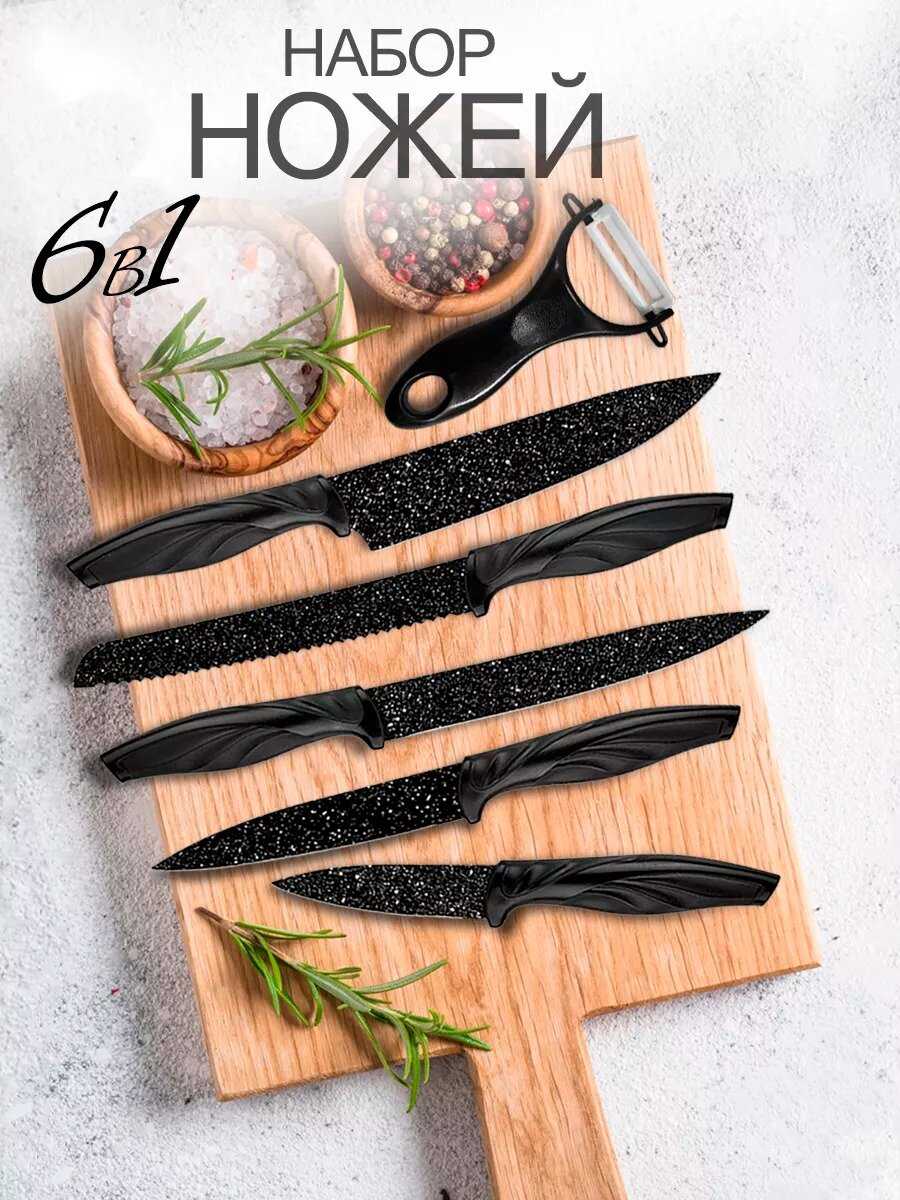 Комплект содержит базовые типы ножей (поварской, для овощей, универсальный), чего достаточно для стандартных задач. В отзывах упоминается керамическая овощечистка в качестве бонуса, но её качество варьируется – некоторые отмечают неудобство использования.