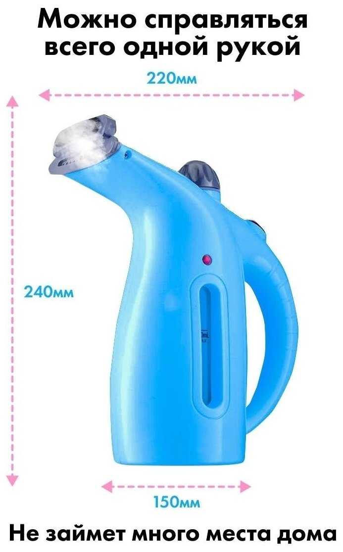 Управление интуитивное: одна кнопка для переключения режимов и простое наполнение резервуара через съёмную крышку. Вес лёгкий (до 1 кг), что упрощает манипуляции при глажке по вертикали. Однако новичкам нужно привыкнуть к технике движений — для результата требуется водить соплом медленно и близко к ткани. Ограничения, вроде короткого шнура или необходимости долива воды, могут потребовать адаптации. -