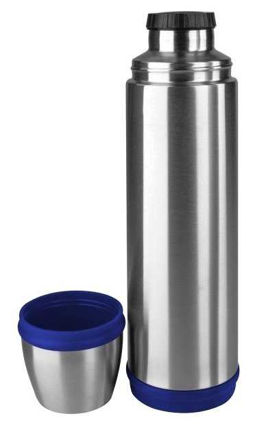 Объём небольшой 0.5 литра, но вполне достаточный для небольшой прогулки по холоду. В комплектацию входит крышка-кружка, изнутри обшитая синим пластиком, который выступает в качестве изолятора, что бы случайно не обжечь пальцы кипятком.