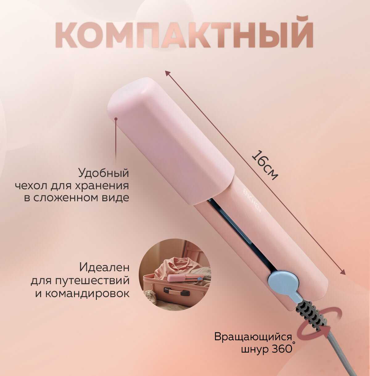 Отзывы о Компактный дорожный выпрямитель для волос Enchen Утюжок для волос (Pink)