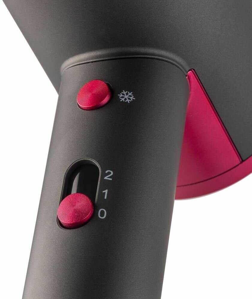 - + Лёгкий, есть холодный воздух, удобно управляется (кнопка холодного воздуха отдельно, легко не глядя переключать режимы), достаточно длинный шнур.
