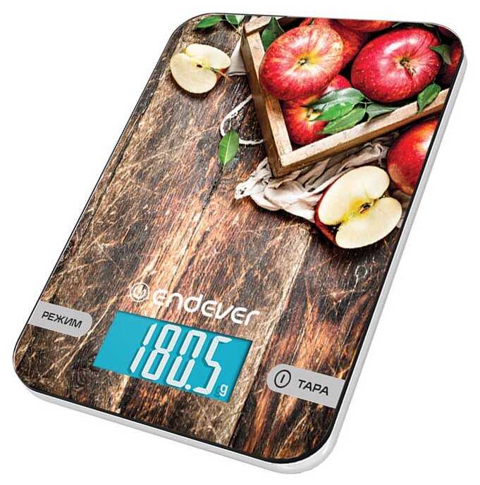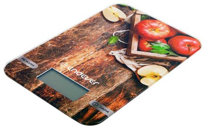 Купила эти весы по многим причинам они очень точные и компактные, у них удобное простое управление и ими удобно пользоваться, присутствуют все основные функции, на всю поверхность платформы нанесен приятный рисунок несколько красных яблок на дощатом столе, и они очень недорого стоят. Весы имеют высокую точность ошибка при взвешивании не превышает 1г при взвешивании объекта в 5кг. Размер весов не превышает 21×14см, при толщине 2 см и весе 350г. Все управление 2 сенсорные кнопки. Одной весы включаются или выключаются, а второй, путем последовательного нажатия на нее выбирается нужный режим взвешивания. В нижней части весов, ровно посередине между двумя кнопками управления, размещен LCD-дисплей. Он подсвечиваемый, достаточно крупный, с серым фоном. На этом сером фоне очень хорошо виднеются выводимые при работе весов символы черного цвета. Эти символы, и цифры, и значки, помимо контрастного цвета, достаточно крупные, так что ошибиться в считывании показаний весов невозможно. Питание весов обеспечивают 2 батарейки CR2032. Очень удобно, что ставить взвешиваемый объект на платформу можно куда угодно, и на точность взвешивания это не повлияет. В этой модели учитывается вес тары, а при долгом отсутствии каких-либо действий, весы автоматически отключаются, что позволяет экономно расходовать батареек. А о необходимости скорой замены комплекта батареек заранее предупредит индикатор низкого заряда. Учитывая то, что и основание весов, и платформа, изготовлены из закаленного стекла, то уход за весами элементарно прост. Довольна своей покупкой, т.к. весы хорошо выполняют свои функции взвешивают точно, без ошибок, все режимы работают без нареканий. Считаю, что с учетом очень недорогой стоимости, это очень практичная модель, которая точно будет полезной на кухне. Поэтому и рекомендую, как выгодную покупку.