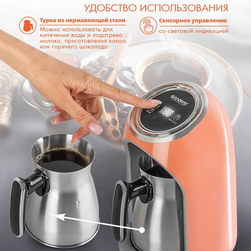 Очень удобно, что кофе не убегает. В обслуживании проста - мыть только турку. При правильном помоле зерна (а именно не слишком мелком) кофе докипает до красивой пенки и не плескается, а томится. Покупкой очень довольны, спасибо!