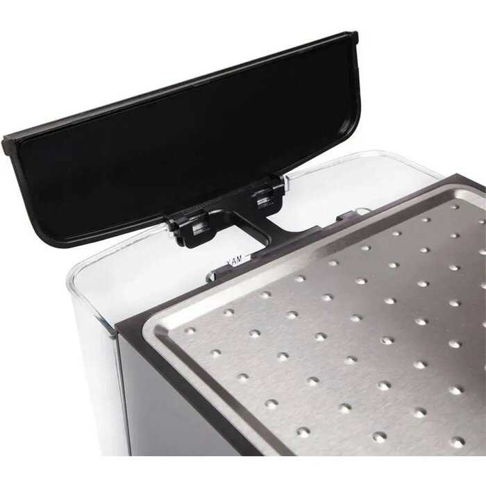 - - Китайский вонючий пластик. Мерную ложку некуда приспособить на хранение. Кофе не успевает развариться, быстро вытекает с брызгами. Запотевают кнопки и экран от пара.