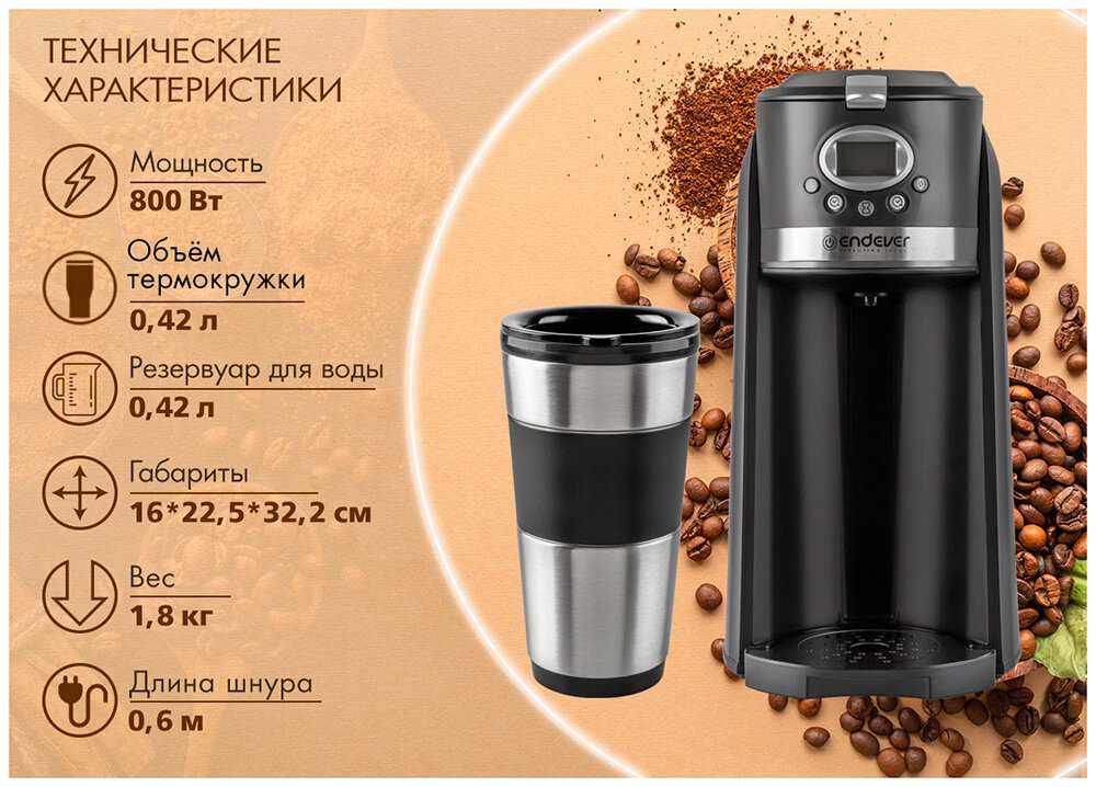 - - термокружка, очень плохой замок, хлипкий. молит кофе очень крупно. вытегки получается, моча , а не кофе. через две недели появилась полоска на дисплеи, что говорит, о плохом качестве.