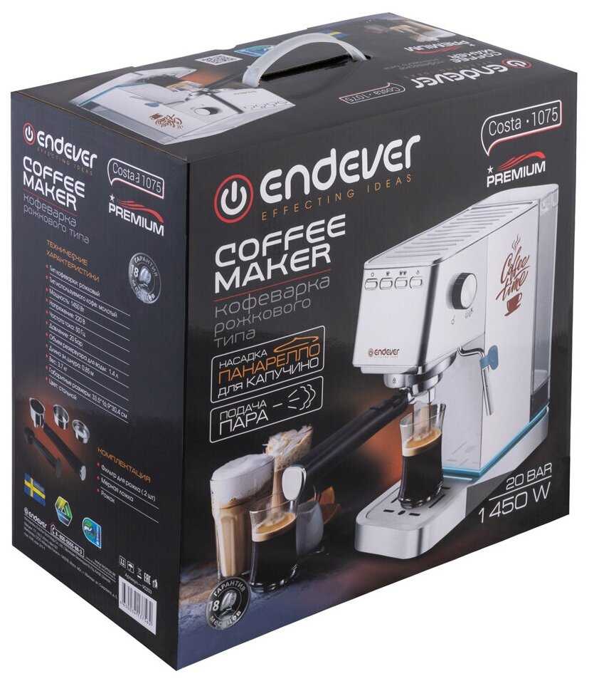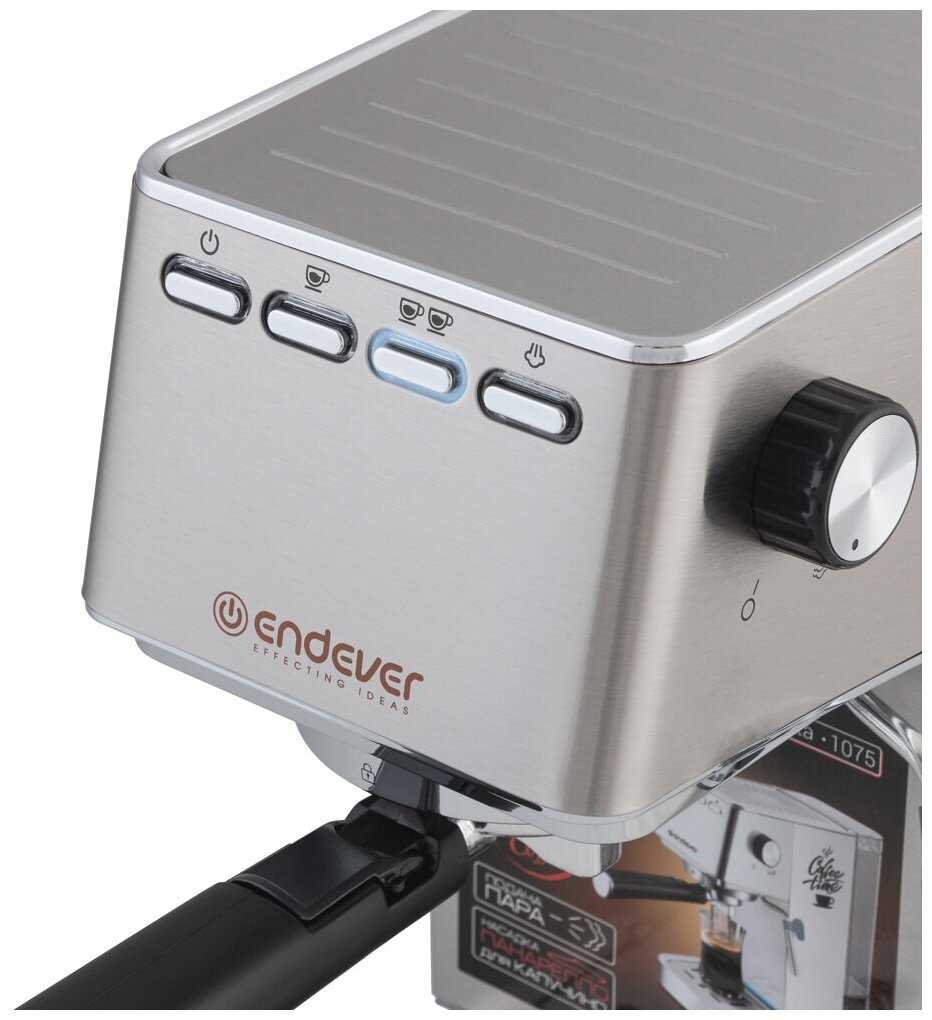 Отзывы о Кофеварка рожковая Endever Costa-1075 / 1450 Вт / 20 Бар / 1,4л / насадка панарелло
