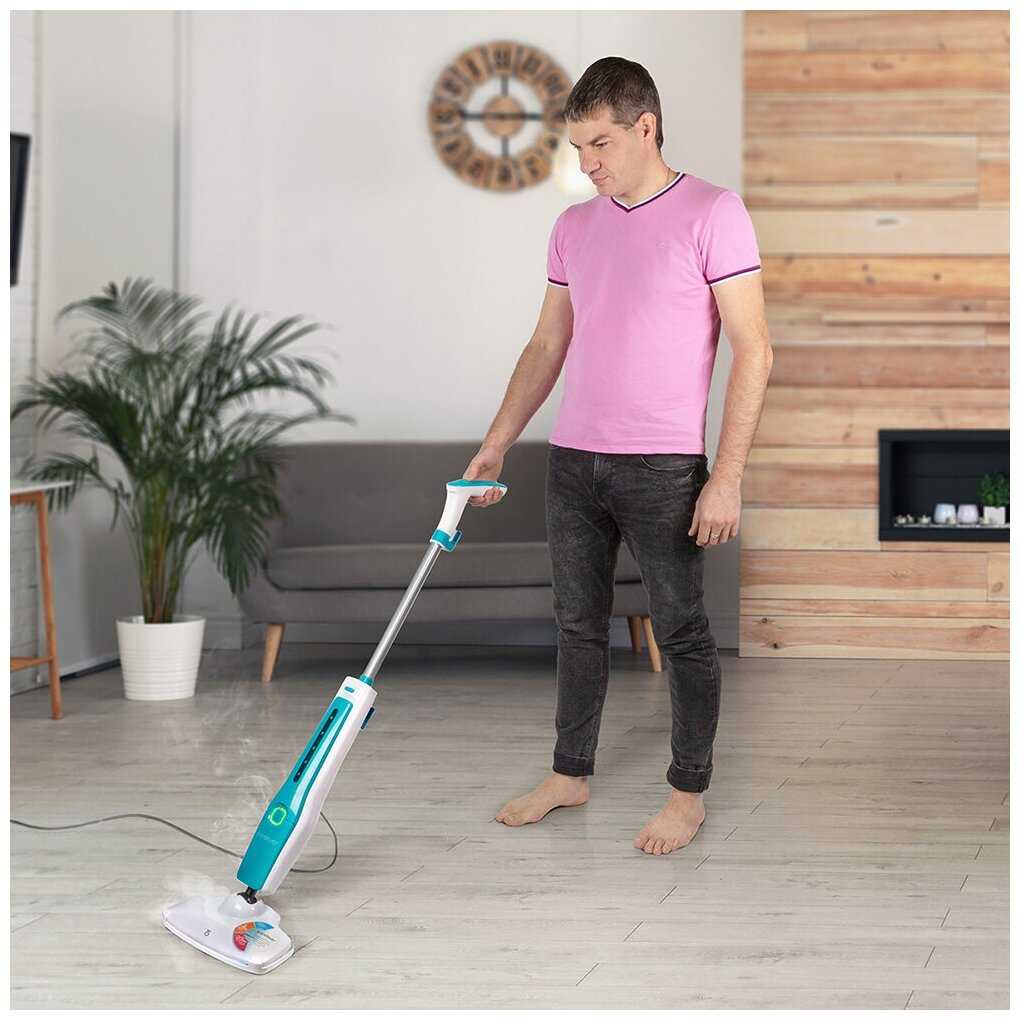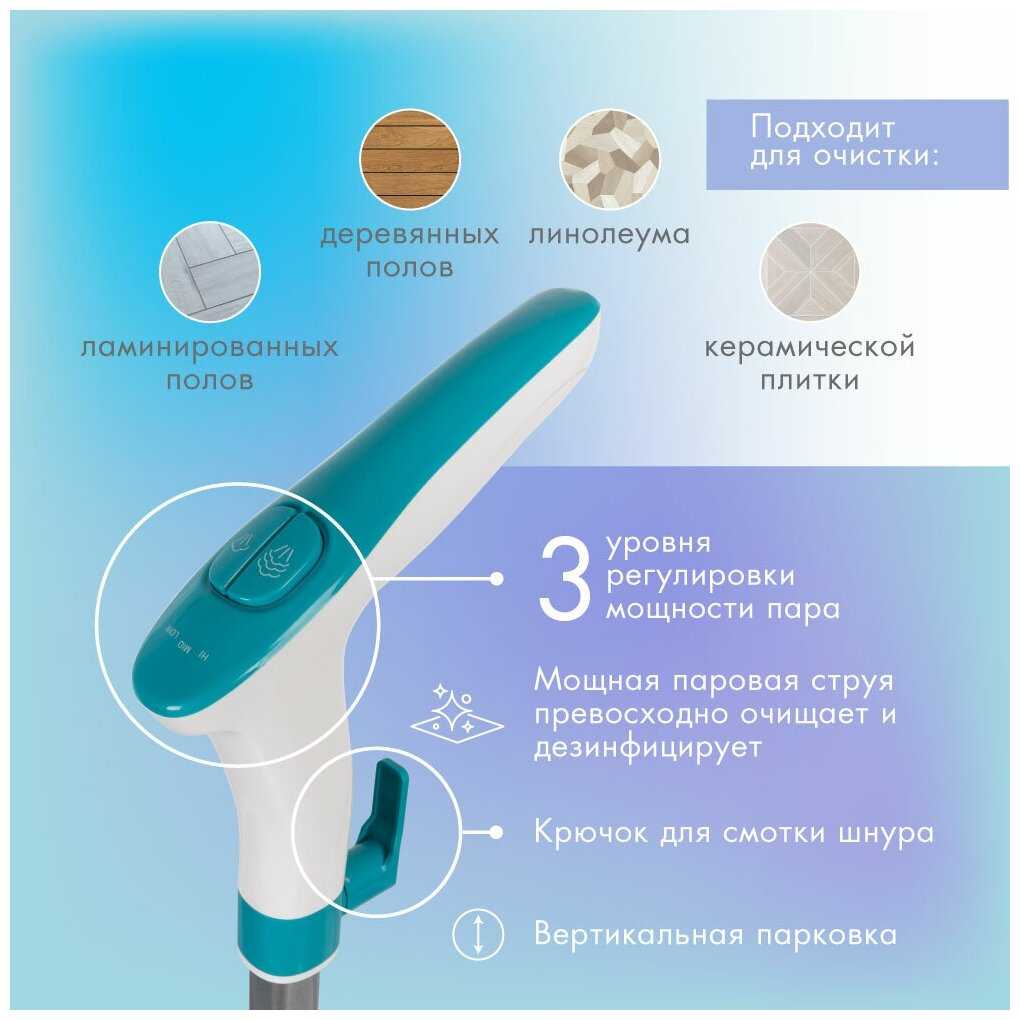 - + Нет разводов на ламинате после мойки этой паровой шваброй. Регулировка мощности пара.
