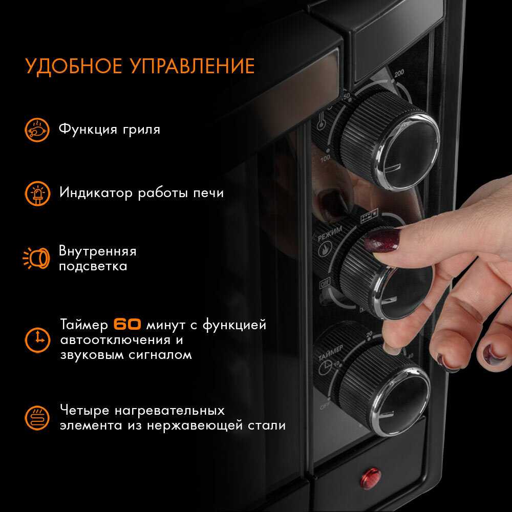 - Механические регуляторы температуры и таймера интуитивно понятны даже пожилым пользователям.