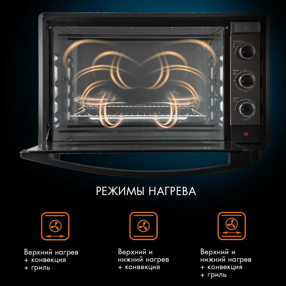 - Конвекция сокращает время приготовления, экономя электроэнергию.