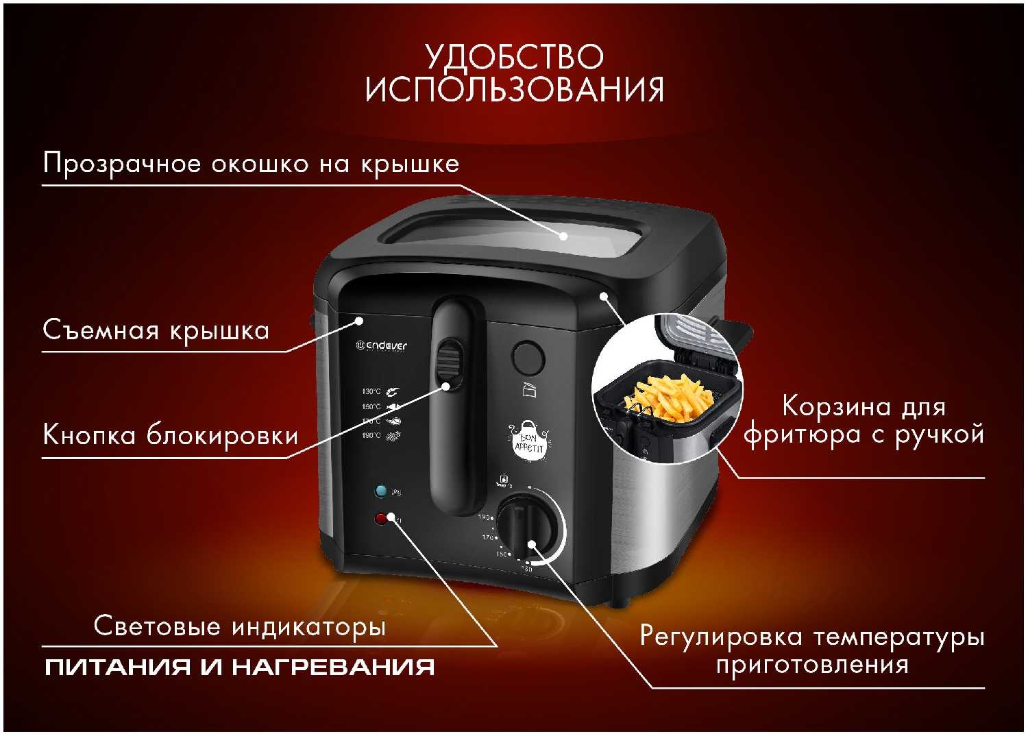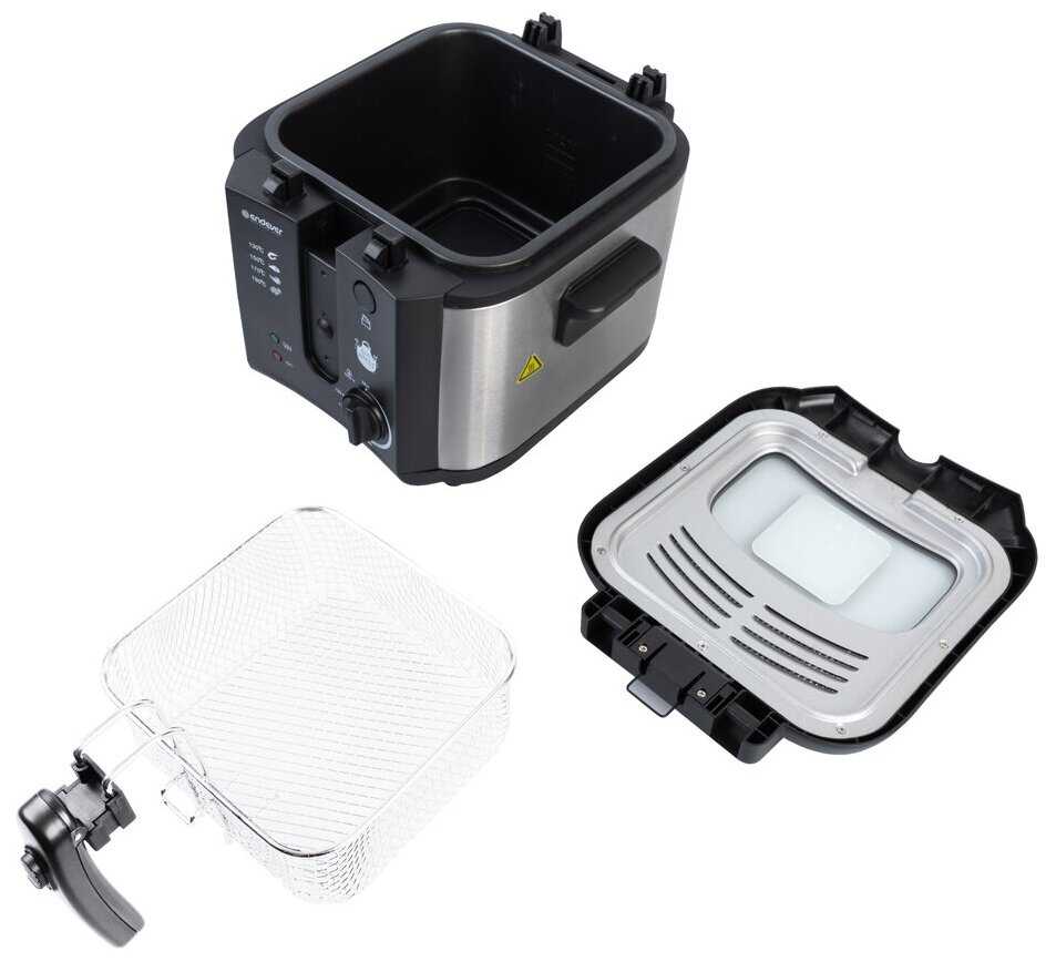 - + Отличная фритюрница, работает без нариканий, крышка снимаеться что удобно при готовке и мытье