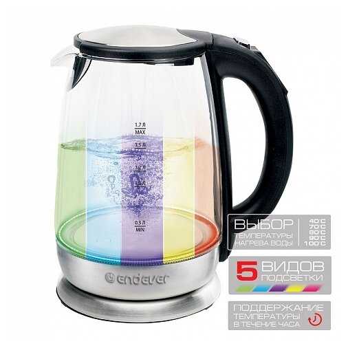 Красивый, пять подсветок, большой объем, можно греть до 40, 70, 80, 90 и 100 градусов. Поддержка температуры.