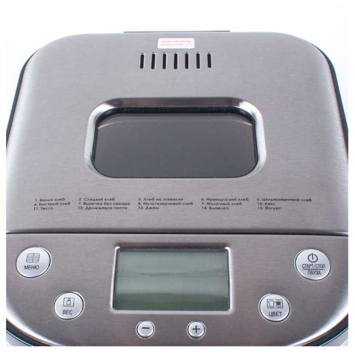 - Дисплей с индикацией этапов (замес, расстойка, выпечка) обеспечивает прозрачность процесса.