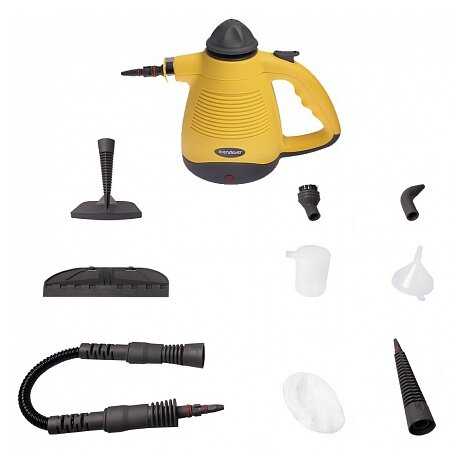 - + Чистит почти всё, можно в том числе и отпаривать одежду, при подсоединении специальной насадки с тканевым чехлом
