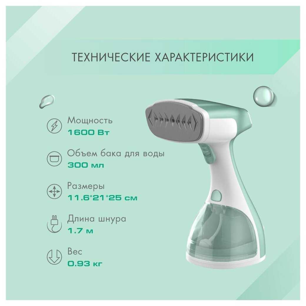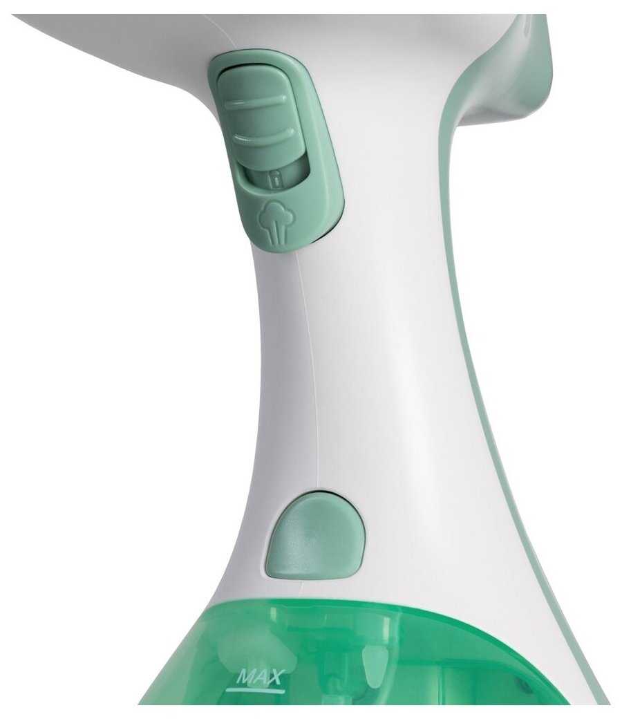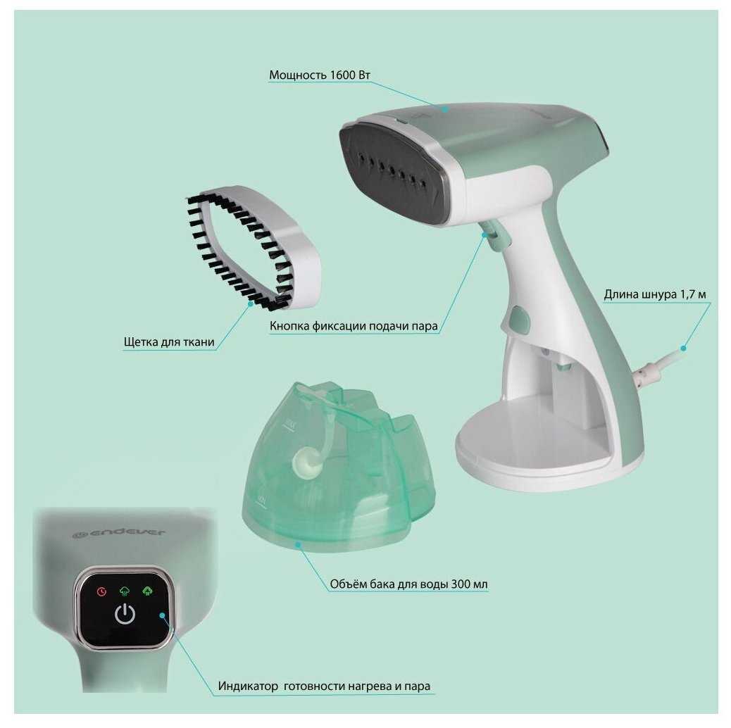 Достаточная мощность отпаривателя. Пар выходит ровно, не брызгает водой. Объем емкости для воды устраивает, 0,3 л. Удобно держать в руке.