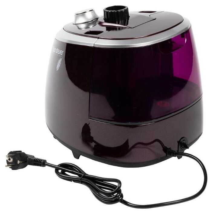 - + Хорошая цена (мне вышел в 5 тыс. руб, чуууууть меньше), хорошая мощность пара, есть доска (столик), большой резервуар под воду, симпатичный сливовый цвет.