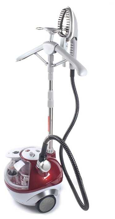 - Телескопическая стойка (до 182 см) с вешалкой и зажимами для брюк упрощает обработку длинных вещей.