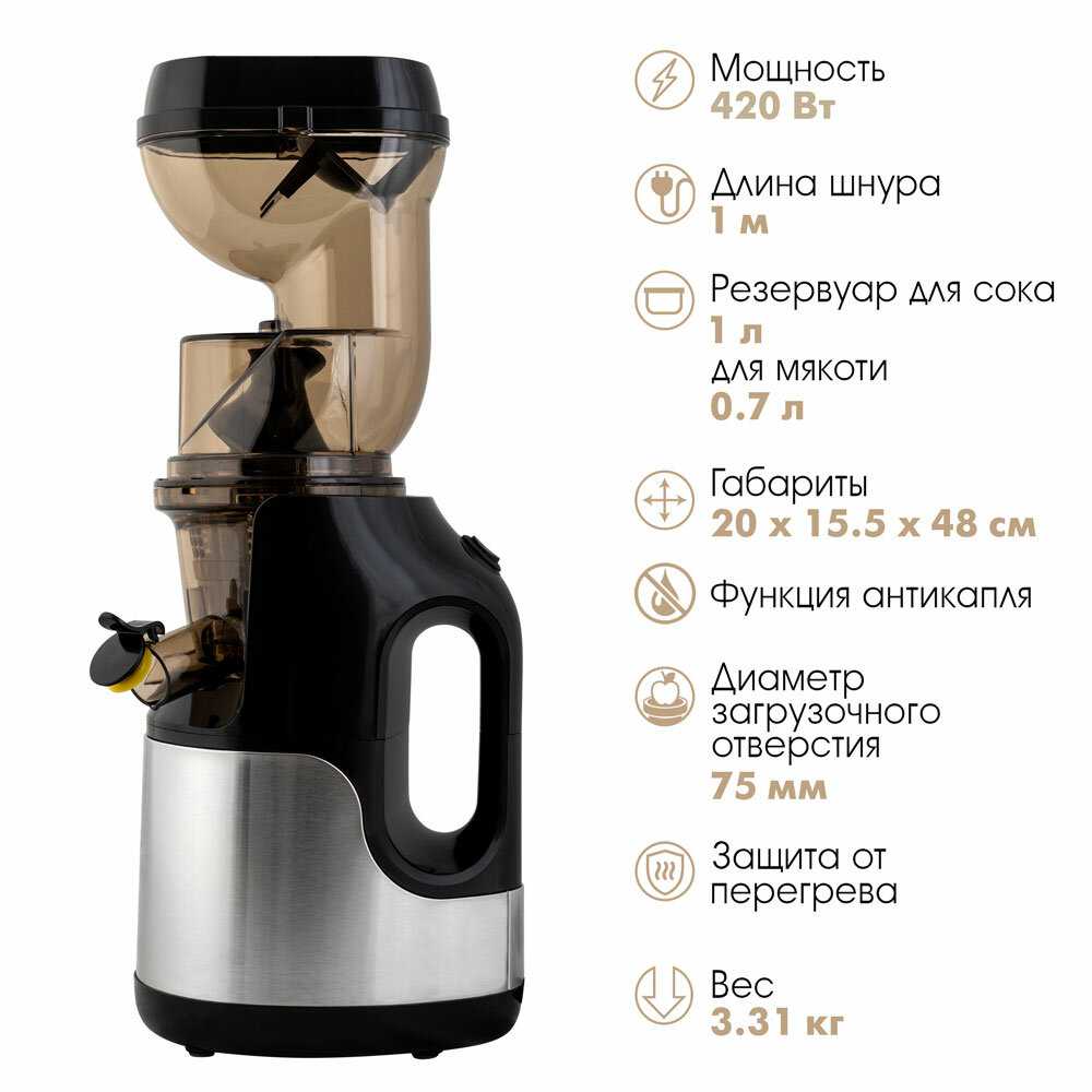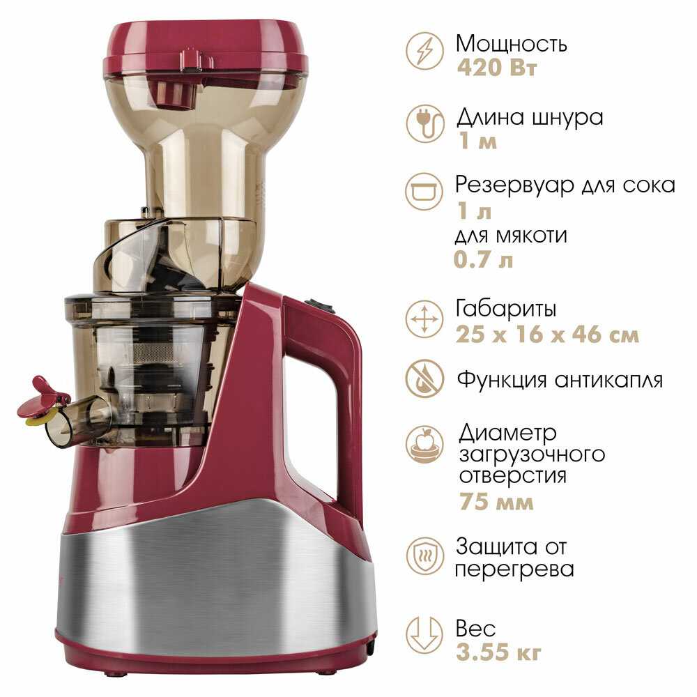 ΠΡΠΎ ΠΎΡΠ»ΠΈΡΠ½ΡΠΉ Π²ΡΠ±ΠΎΡ Π΄Π»Ρ ΡΠ΅Ρ , ΠΊΡΠΎ ΡΠ΅Π½ΠΈΡ ΠΏΠΎΠ»Π΅Π·Π½ΡΠ΅ ΡΠ²ΠΎΠΉΡΡΠ²Π° ΡΠ½Π΅ΠΊΠΎΠ²ΡΡ ΡΠΎΠΊΠΎΠ²ΡΠΆΠΈΠΌΠ°Π»ΠΎΠΊ (Π½Π΅ΠΎΠΊΠΈΡΠ»ΡΠ΅ΠΌΡΠΉ ΡΠΎΠΊ, ΡΡΡ ΠΎΠΉ ΠΆΠΌΡΡ ) Π½ΠΎ ΠΈΠΌΠ΅Π΅Ρ ΠΎΠ³ΡΠ°Π½ΠΈΡΠ΅Π½Π½ΡΠΉ Π±ΡΠ΄ΠΆΠ΅Ρ. ΠΠ½Π° ΠΈΠ΄Π΅Π°Π»ΡΠ½ΠΎ ΠΏΠΎΠ΄Ρ ΠΎΠ΄ΠΈΡ Π΄Π»Ρ ΡΠ΅ΠΌΡΠΈ Π΄Π»Ρ ΠΏΡΠΈΠ³ΠΎΡΠΎΠ²Π»Π΅Π½ΠΈΡ Π½Π΅Π±ΠΎΠ»ΡΡΠΈΡ ΠΎΠ±ΡΠ΅ΠΌΠΎΠ² ΡΠΎΠΊΠ° Π΅ΠΆΠ΅Π΄Π½Π΅Π²Π½ΠΎ, Π° ΡΠ°ΠΊΠΆΠ΅ Π΄Π»Ρ Π΄Π°ΡΠ½ΠΎΠ³ΠΎ ΠΈΡΠΏΠΎΠ»ΡΠ·ΠΎΠ²Π°Π½ΠΈΡ. ΠΡΠΎ Ρ ΠΎΡΠΎΡΠΈΠΉ ΡΠ°Π±ΠΎΡΠΈΠΉ ΠΈΠ½ΡΡΡΡΠΌΠ΅Π½Ρ Π±Π΅Π· ΠΏΡΠ΅ΡΠ΅Π½Π·ΠΈΠΉ Π½Π° ΡΠΎΡΠΊΠΎΡΡ. -