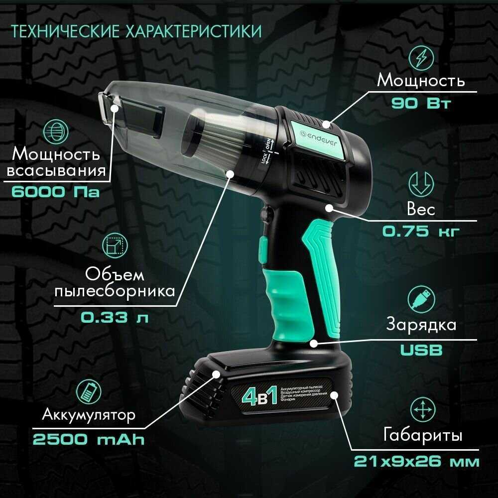 Отзывы о Беспроводной автомобильный пылесос / компрессор для шин ENDEVER SKYCLEAN (VC-295)