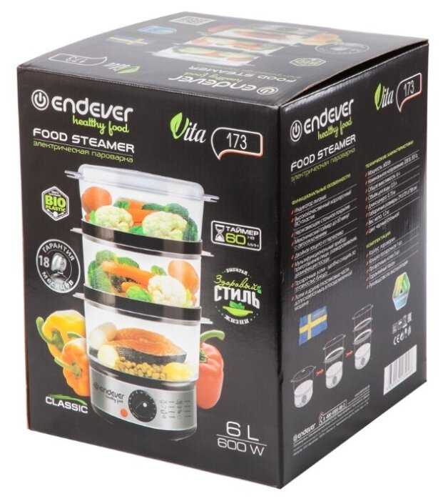 Я любитель здоровой пищи и пароварку Endever Vita-165 свою оценила,самый диетический способ готовки,без жарки,без масла,оба отделения использую:вниз котлеты или рыбные стейки, наверх:стручковую фасоль,брокколи,любые другие овощи на гарнир.Котлеты очень нежные и сочные получаются, а у овощей сохраняется форма и все витамины, т.к при варке это теряется.