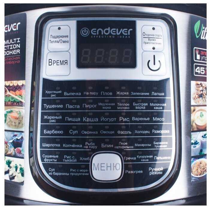 Покупал Endever Vita-95 из-за наличия в этой модели 42 автоматических программ приготовления. Все эти программы позволяют утверждать, что эта модель универсальна, т.к используя стандартные программы можно без особого труда размораживать полуфабрикаты, жарить и запекать мясные, рыбные и овощные блюда, варить различные супы, отваривать на пару, выпекать изделия из теста и тушить. Помимо этого имеются автоматические программы для приготовления самых распространенных блюд. Управление всеми функциями построено на электронике, с помощью сенсорных кнопок. Для того, чтобы пользователь не запутался в выборе нужной программы, за выбор каждой программы, или режима тепловой обработки, отвечает отдельная сенсорная кнопка с соответствующей надписью. Все информация отражается на жидкокристаллическом дисплее. Также есть возможность отдельно задействовать функции разогрева, отложенного старта и отмены действия. Регулируются также и время приготовления, время отложенного старта и температурный режим обработки. Результат функционирования этих программ настолько хорош, что экспериментировать особой нужды у меня и не возникло. Блюда получаются не только вкусными, но и готовятся намного быстрее, при этом требуя от меня меньших затрат и сил, и времени. Покупкой доволен, мультиварка работает без нареканий, качественно готовит большое число самых разнообразных блюд и не требует контроля за своей работой. Рекомендую удобный и полезный прибор по очень доступной цене.