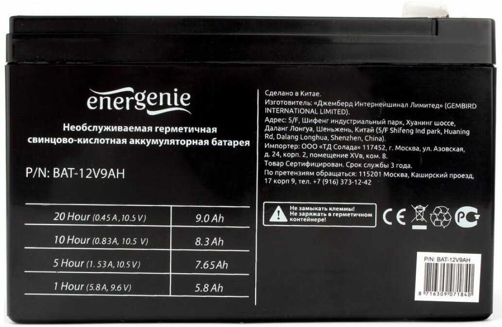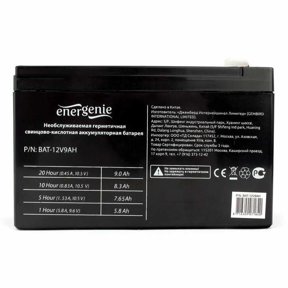 Отзывы о Аккумуляторная батарея Energenie BAT-12V9AH 12В 9 А·ч