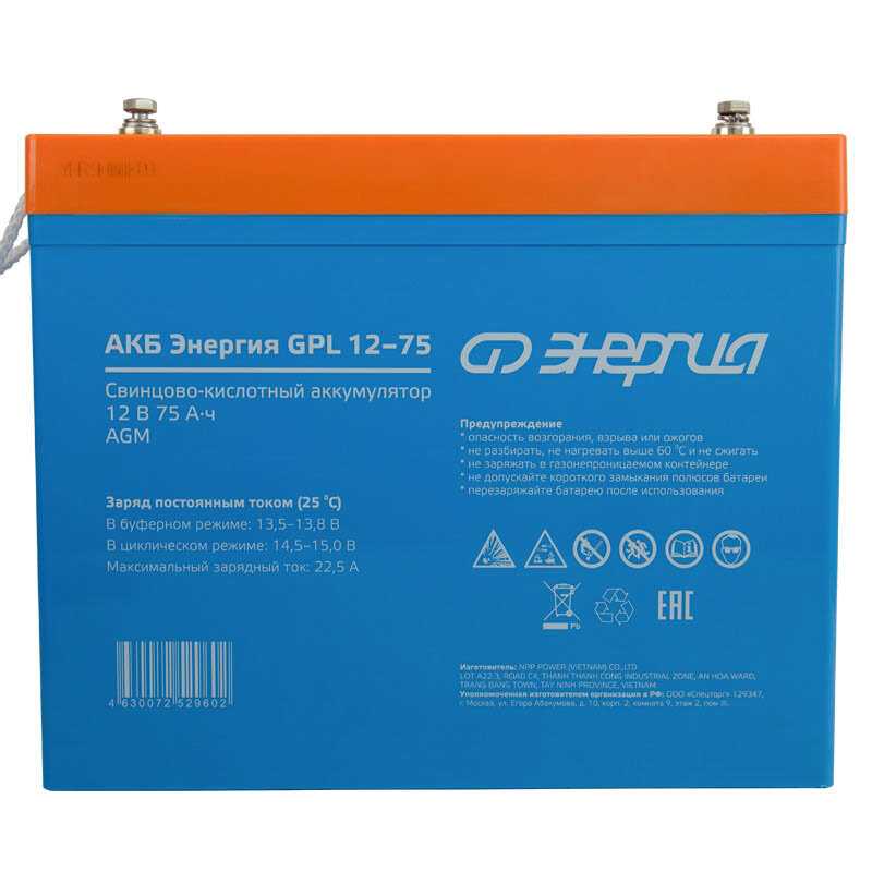 16 отзывов пользователей o Энергия АКБ 12–75 GP
