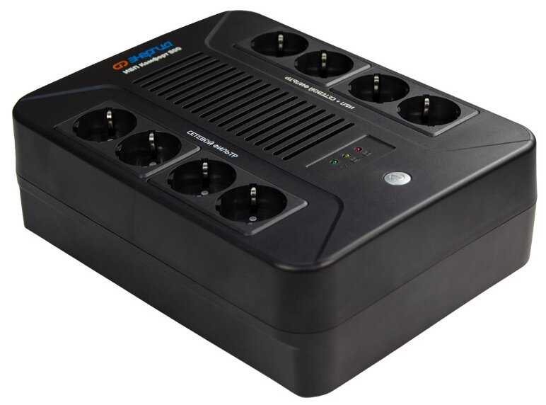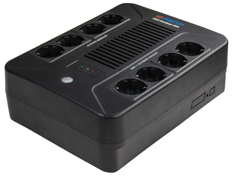 - + 4 сетывых фильтра с ИБП + 4 сетевых фильтра. Для роутера батареи хватило почти на 7 часов. Тяжелый. Тихий. Слышно только звуковые сигналы, когда переключается на работу от батареи и при разряженной батареи.