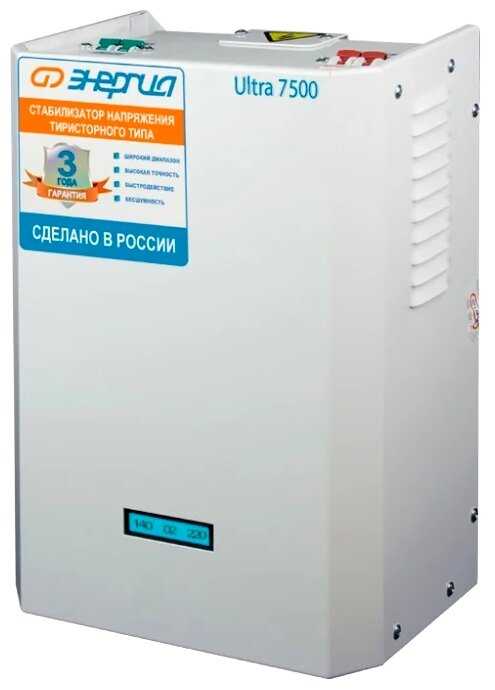 Отличный образчик однофазного стабилизатора напряжения от отечественного производителя Энергии. Обладает всеми плюсами релейных стабилизаторов, но начисто лишен их недостатков. Абсолютная тишина при работе. Установка и монтаж не требуют специальных навыков, справился с этим самостоятельно при помощи инструкции.