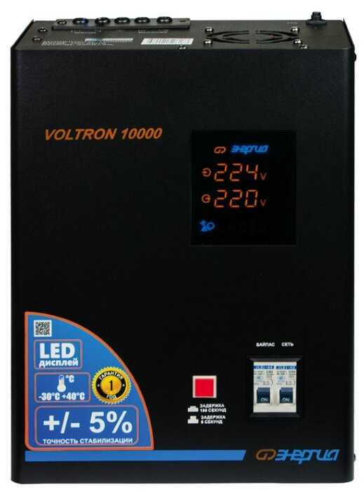 Стаб приобрёл 6 дней назад. впечатления следующие. дом два этажа . поставил на пол на 2 этаже . рядом две жилые комнаты сыновей. первые два дня на щелчки особого внимания не обращали на 3 и 4 сказали чтоб убрал его подальше. перевесил на 1 этаж в прихожую на стенку . всё тихо и спокойно стало. Одним словом работает как и должен работать . напряжение на входе выходе показывает нагрузку тоже но есть нюансы.... напряжение в сети 180 - 230 среднее вечером 200 . заметил что всё время щёлкает реле в диапазоне примерно 210 - 220 . почему не может работать без щелчков в таком стандартном диапазоне. думаю что это реле выйдет из строя первым. причём при их переключении всегда мигает свет в большей или меньшей степени хотя все лампы светодиодные . и ещё чтобы включить байпас нужно сначала выключить сеть а потом включить байпас если включить оба стаб работает в режиме стабилизации . неудобства заключается в том чтобы перейти в обходной режим нужно выключить всё. при этом сразу не всегда можно включить приборы . например работающий холодильник при переходе в бай пас очень сильно застучал. потому что питание выключили и резко включили . А вообще пока аппарат мне нравится. Выбирал долго среди ресанта ..... руселф .... но выбрал энергию вольтрон 10000. Надеюсь на его долгую работу.