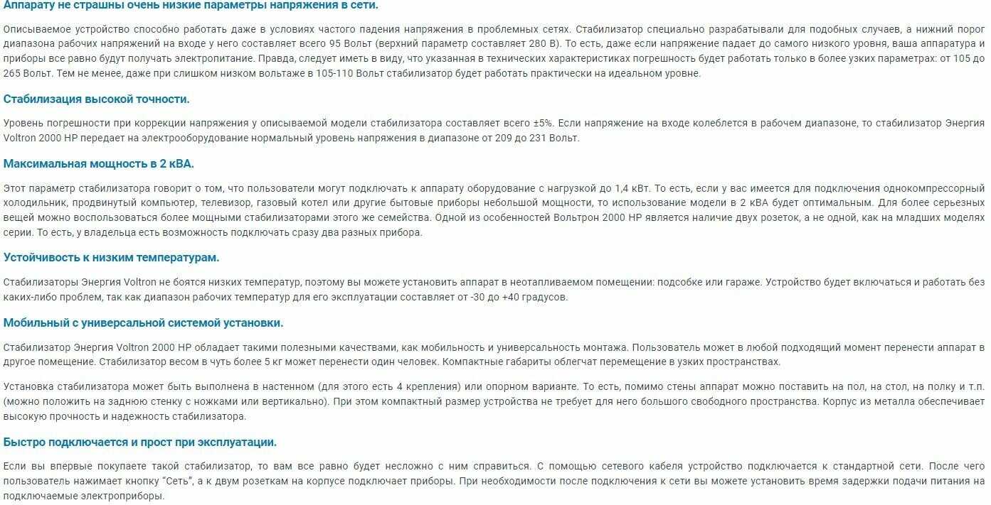 Отзывы о Стабилизатор напряжения Энергия Voltron 2000 (5%)