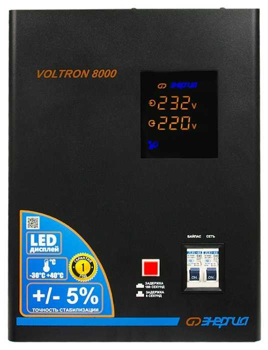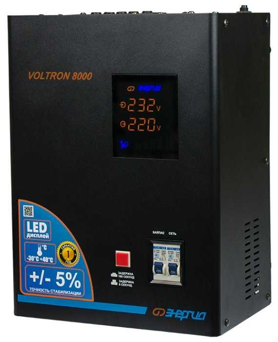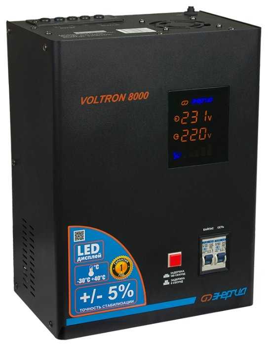 Стабилизатор Энергия Voltron 1000 покупался лет 8 назад, стоит до сих пор. С обязаностями справляется на 100%.Установили на даче в доме брата, проживает круглогодично. До установки были проблемы с электричеством, напряжение падало до 110-140 Вольт. Сгорела плата управления на стиральной машине. Холодильник умер. Так же