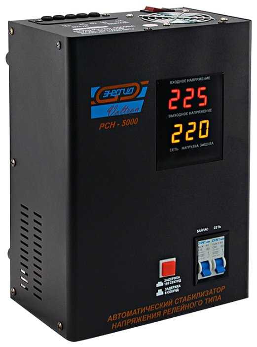 - + Классический релейный стабилизатор напряжения от ЭТК Энергия. Не выбивает вводной автомат. Держит мощность при токе нагрузки в 10 ампер и входном напряжении 120 В. В этом же диапазоне продолжает поднимать напряжение до 200-220 В. Точность не самая высокая, но стабилизация налицо