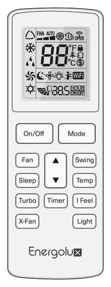 | Дополнительные режимы : | авто, вентиляция, ночной, осушение, турбо |