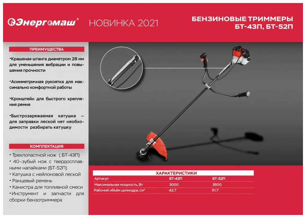 Характеристи Энергомаш Триммер бензиновый БТ-52П