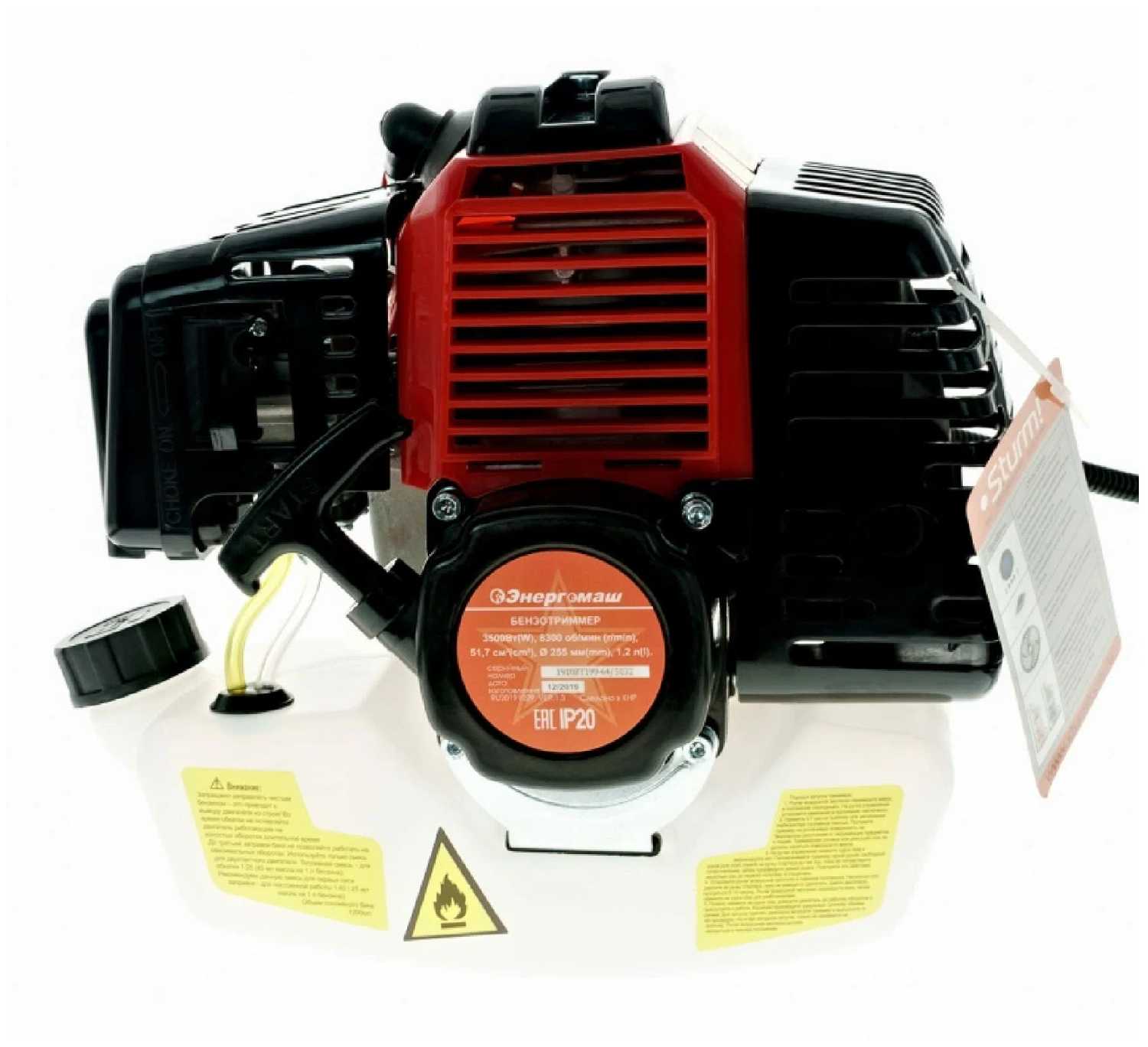 | Дополнительная информация : | преимущества: нож с твердосплавными напайками катушка с леской ассиметричная рукоятка ранцевый ремень разборная штанга, свеча зажигания - L7T M14*125 шестигранник 19 мм, праймер - да, тип двигателя - одноцилиндровый двухтактный воздушного охлаждения, обороты на холостом ходу (об/мин) - 3 000, вид топлива - смесь бензина АИ-92 и специального масла для двухтактных двигателей |