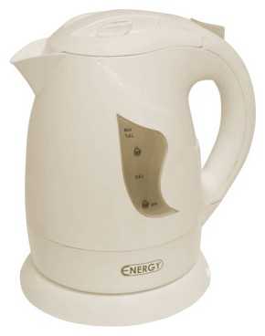 | Дополнительная информация : | Чайник имеет округлую форму и удобную ручку, на корпусе расположены индикаторы уровня воды, логотип 'ENERGY' на передней части. |