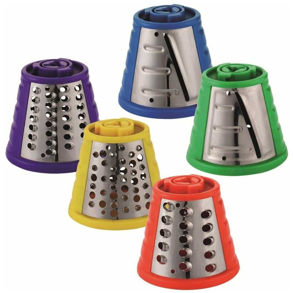 - 5 насадок позволяют нарезать кубиками, слайсами, соломкой и тереть, заменяя несколько инструментов.
