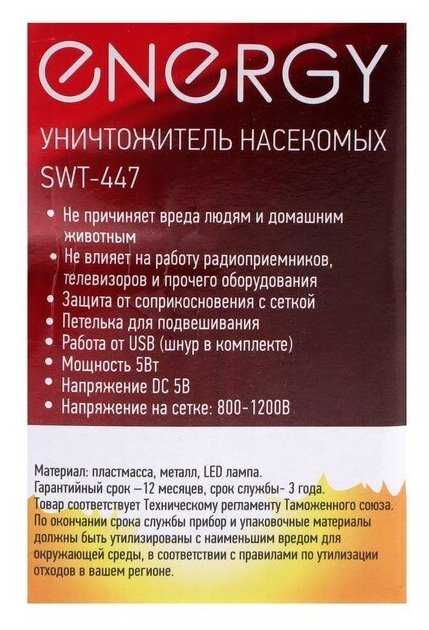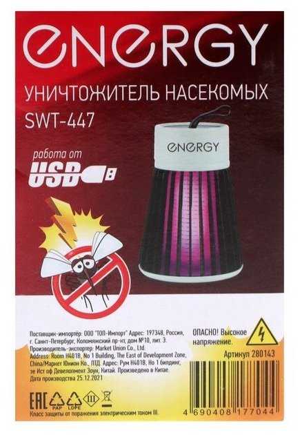 Подробная комплектация : | 1шт. Уничтожитель насекомых ENERGY 280143 SWT-447 |